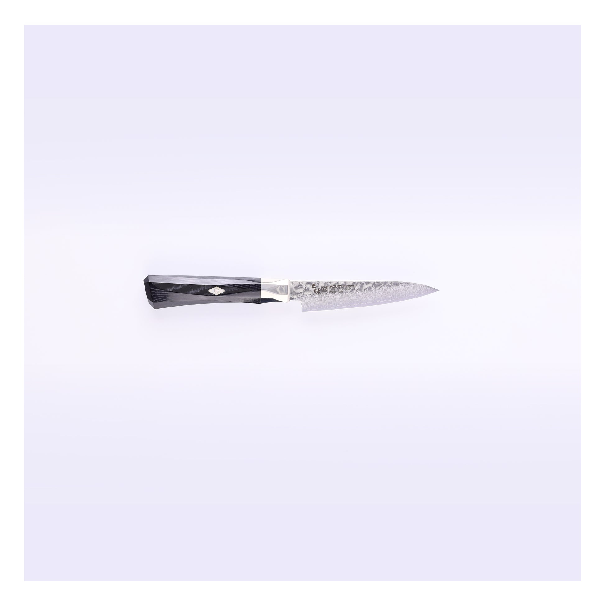 日本の古典的な槌目模様が職人技法を感じさせる、ダマスカス鋼のブレードです。