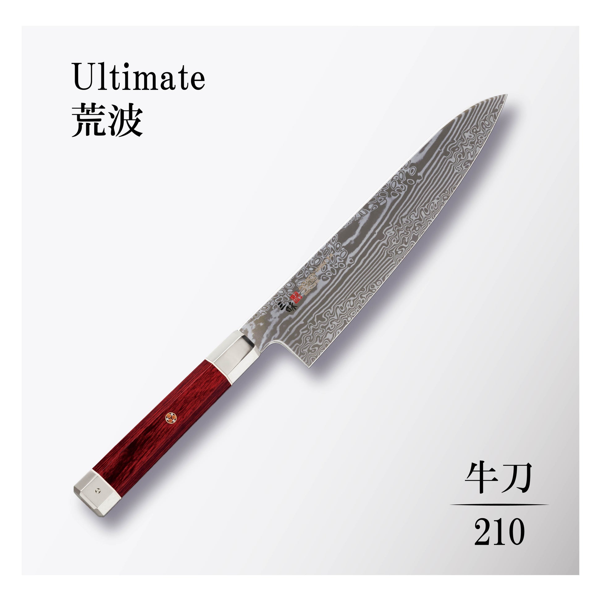 通常のダマスカス材よりはっきりした模様がでることが特徴です。当社独自の鍛造技術で日本古来のモチーフの波を表現しました。